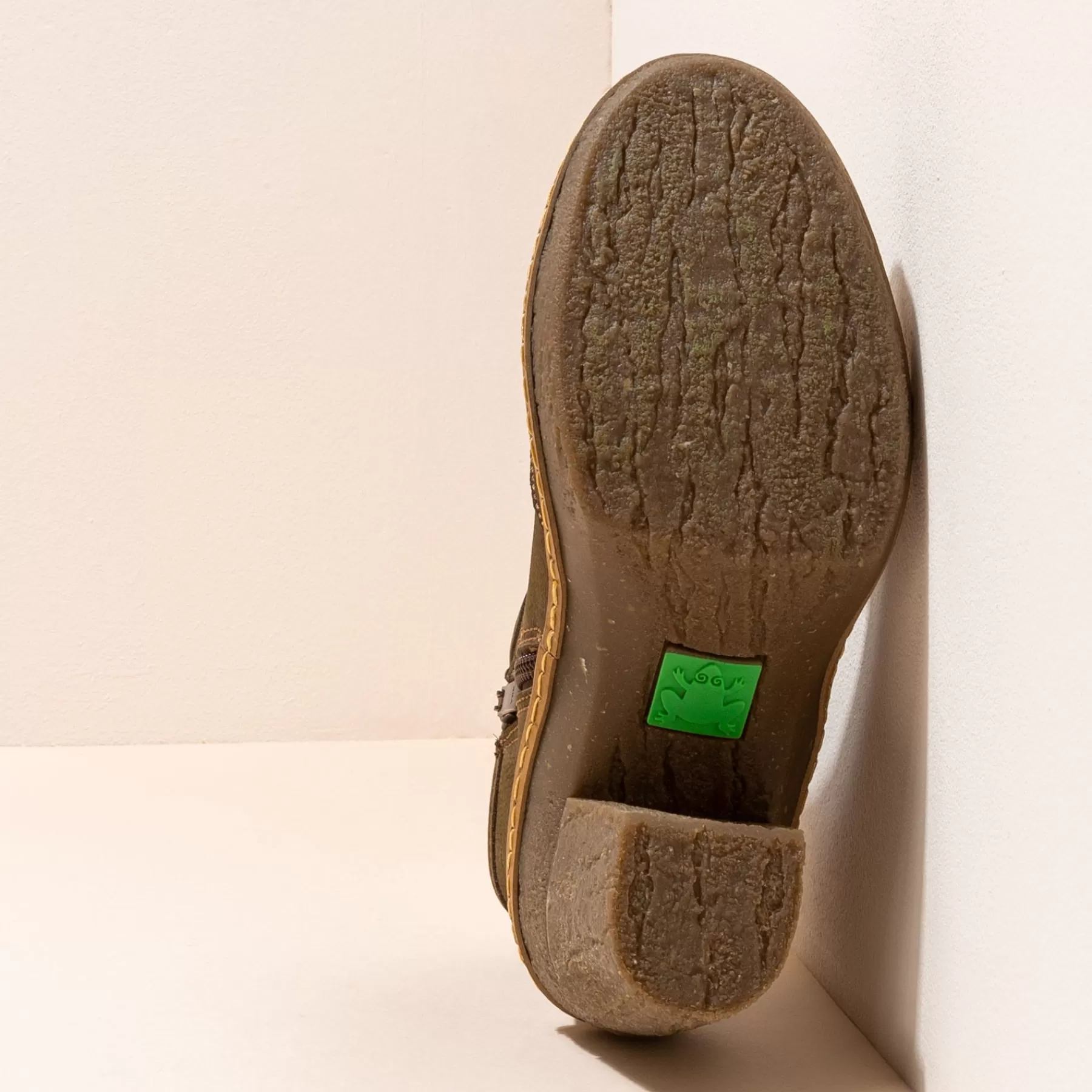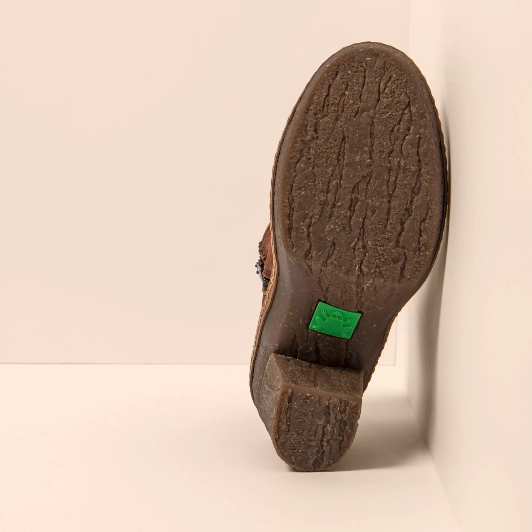 De Atlantische Bossen Met Hun Majestueuze Loofbomen Maken Deel Uit Van Het Ontwerp Waarin De Textuur Van De Stam, Het Mos En Korstmossen Die Gewoonlijk Op Symbiotische Wijze Groeien, Zijn Opgenomen In Het Ontwerp Van De Gerecyclede Rubberen Zool. Het Is Een Ogenschijnlijk Hoge Hak, Maar Zeer Comfortabel Dankzij De Zorgvuldig Ontworpen Teenveer En Het Bovenwerk, De Flexibiliteit Van Het Rubber En De Uitneembare Binnenzool.