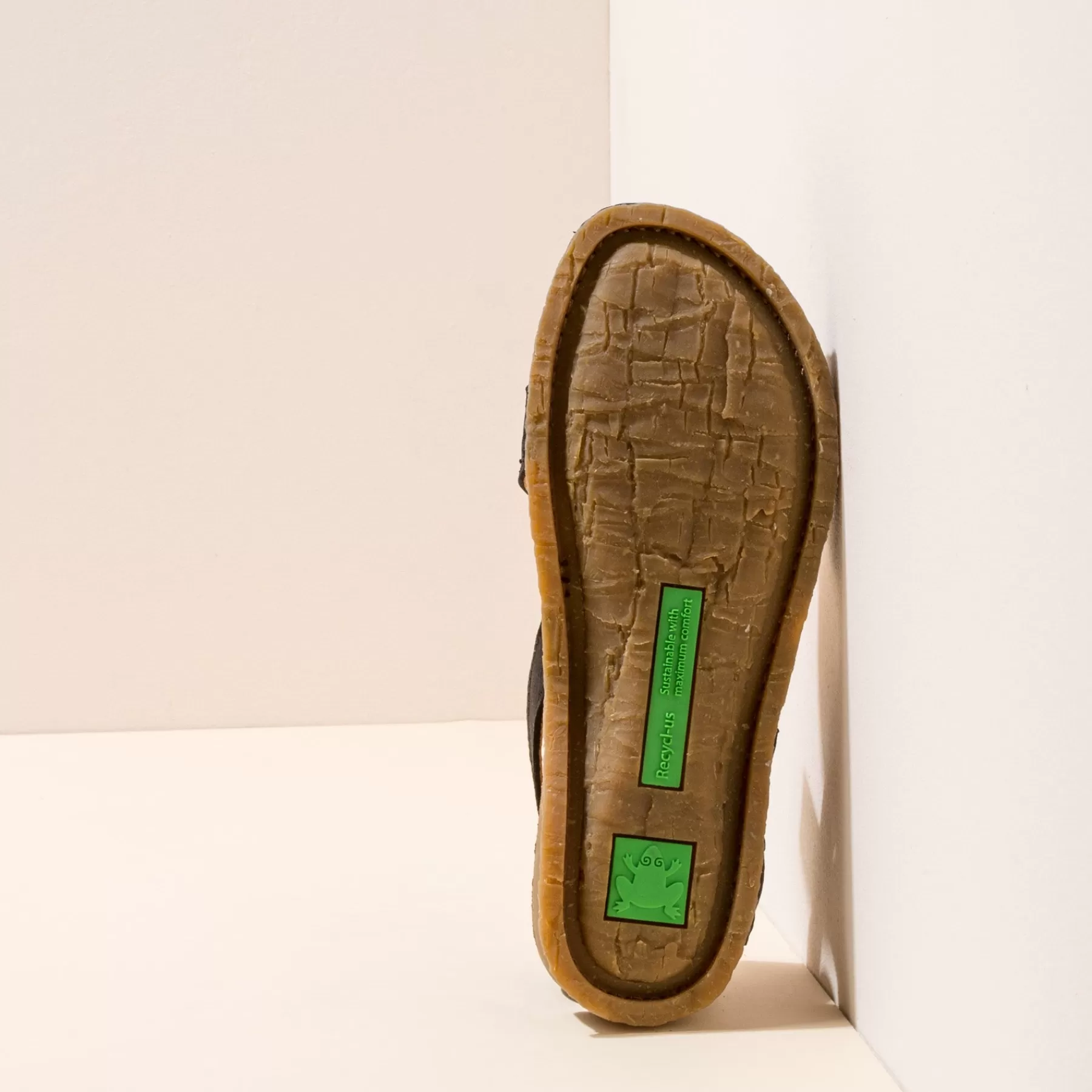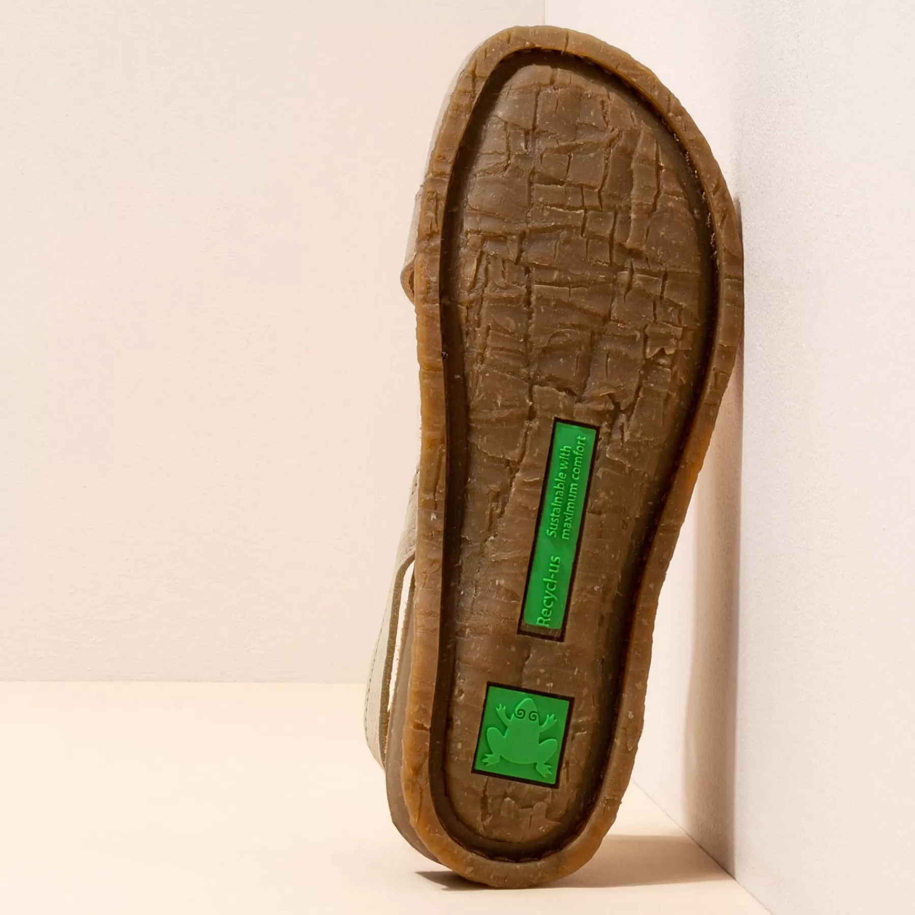 Een Sandaal Die De Buitenzool En Binnenzool Van Gerecycled Rubber Uit Één Stuk Combineert, Waardoor Er Minder Onderdelen Nodig Zijn En Recycling Wordt Vergemakkelijkt. Het Ontwerp Van De Buitenzool Is Geïnspireerd Op De Stam Van De Palmbomen Op Het Eiland Panglao In De Filippijnen. Deze Lijn Onderscheidt Zich Door Zijn Flexibiliteit. Het Gerecyclede Traagschuim Aan De Binnenkant Zorgt Voor Extra Comfort.