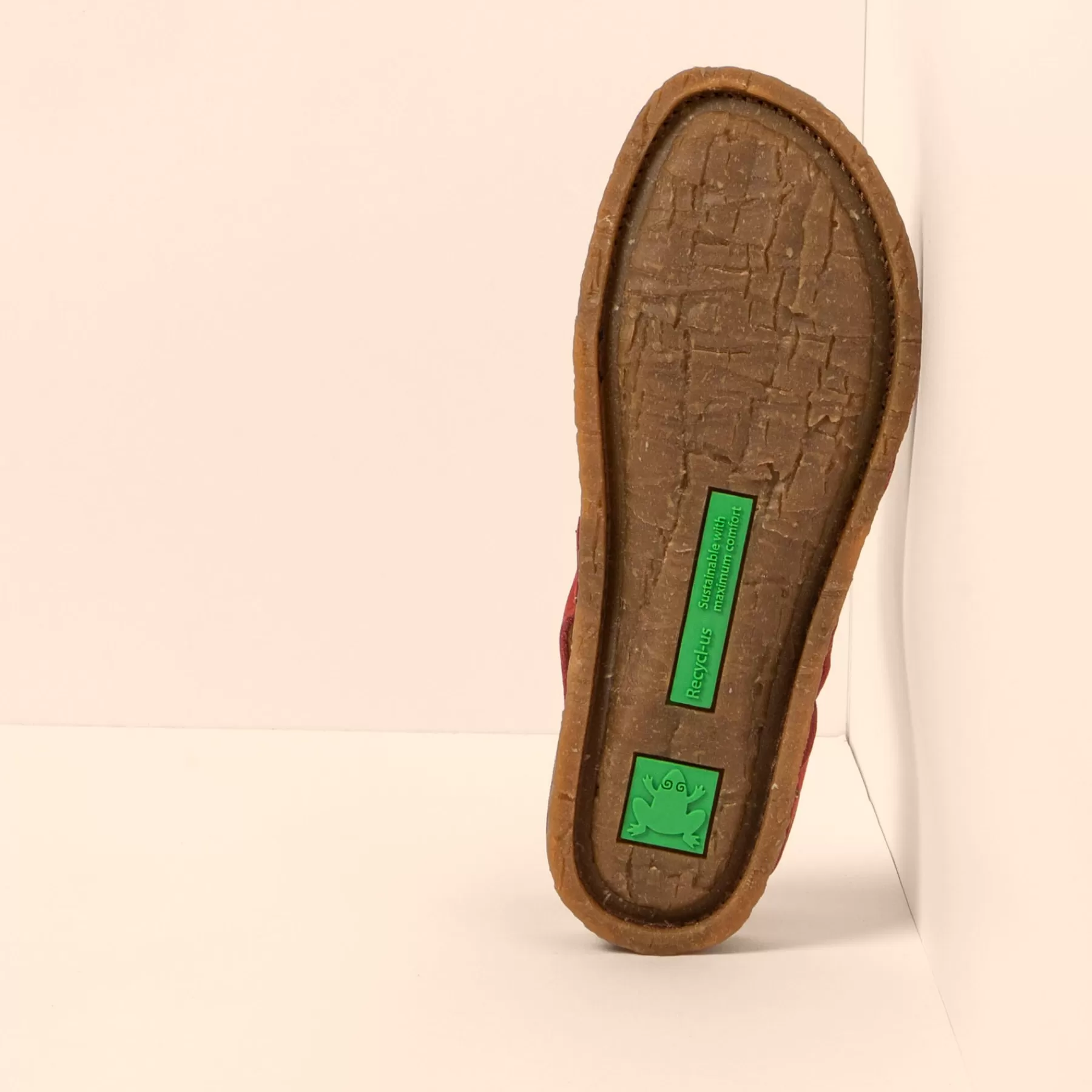 Een Sandaal Die De Buitenzool En Binnenzool Van Gerecycled Rubber Uit Één Stuk Combineert, Waardoor Er Minder Onderdel…