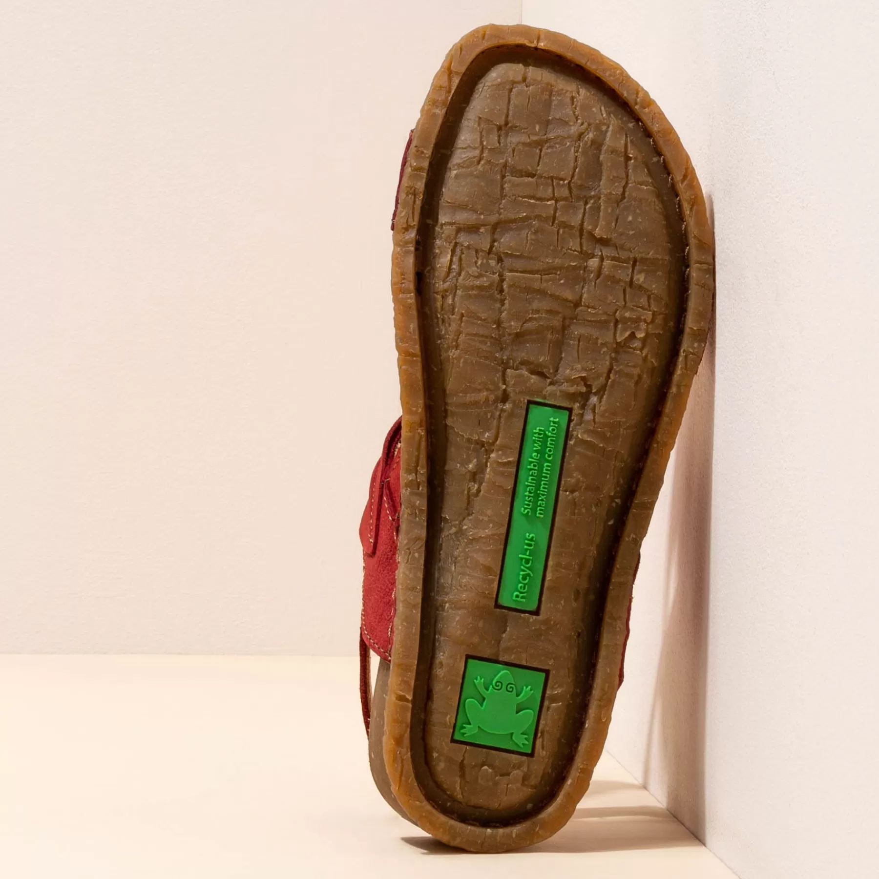 Een Sandaal Die De Buitenzool En Binnenzool Van Gerecycled Rubber Uit Één Stuk Combineert, Waardoor Er Minder Onderdel…