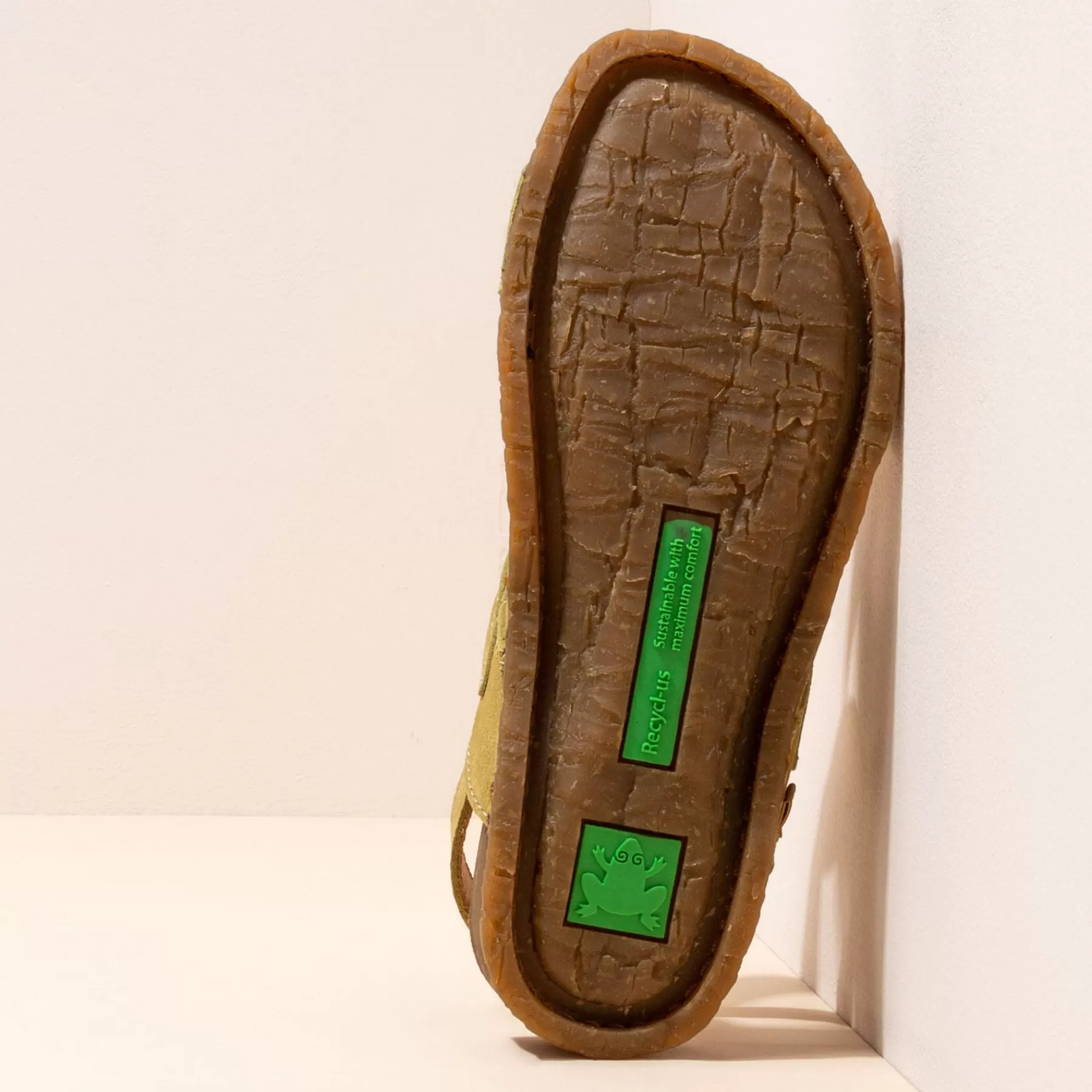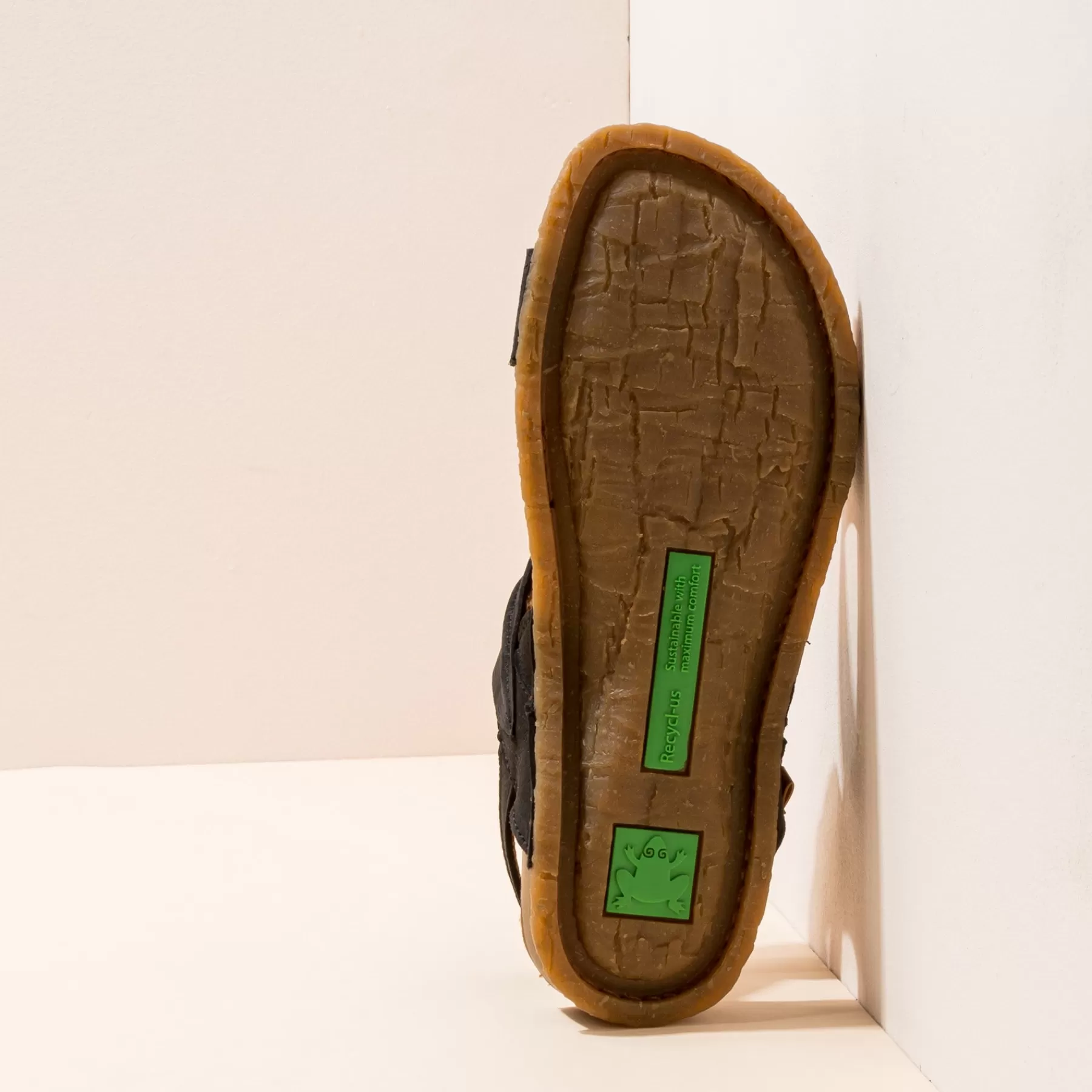 Een Sandaal Die De Buitenzool En Binnenzool Van Gerecycled Rubber Uit Één Stuk Combineert, Waardoor Er Minder Onderdelen Nodig Zijn En Recycling Wordt Vergemakkelijkt. Het Ontwerp Van De Buitenzool Is Geïnspireerd Op De Stam Van De Palmbomen Op Het Eiland Panglao In De Filippijnen. Deze Lijn Onderscheidt Zich Door Zijn Flexibiliteit. Het Gerecyclede Traagschuim Aan De Binnenkant Zorgt Voor Extra Comfort.